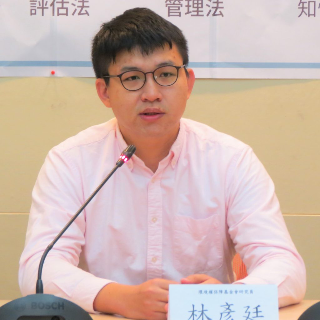 環境權保障基金會研究員林彥廷提到,第九屆立委在修正空污法、毒管法時分別納入資訊公開與民眾參與的條款,皆為社區知情權的重要內涵,期待第十屆立委能有更完整的討論與立法(照片提供:環境法律人協會)。