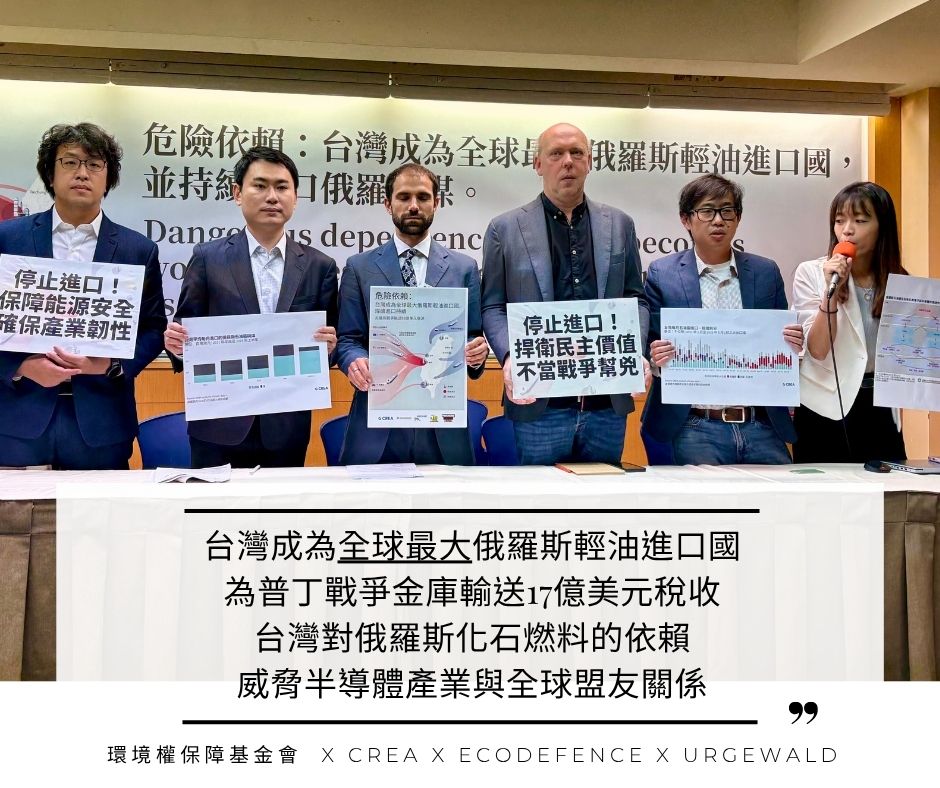 環境權保障基金會今日(10/1) 偕同能源與清潔空氣研究中心(CREA)、俄國環保組織 Ecodefense 與德國 Urgewald 共同發表《危險依賴:台灣成為全球最大俄羅斯輕油買家,煤礦進口持續》研究報告。